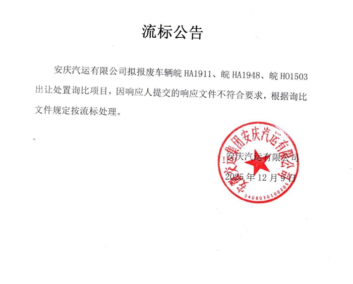 擬報廢公務車皖HA1911、皖HA1948、皖HO1503出讓處置流標公告